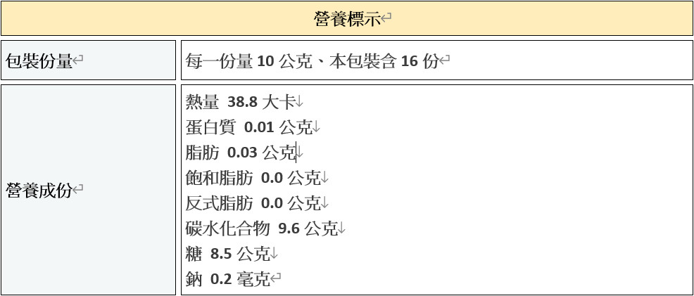 成 分:白砂糖、麥芽糖漿、冰糖、梨汁、蜂蜜、胖大海、桔梗、甘草、天然薄荷